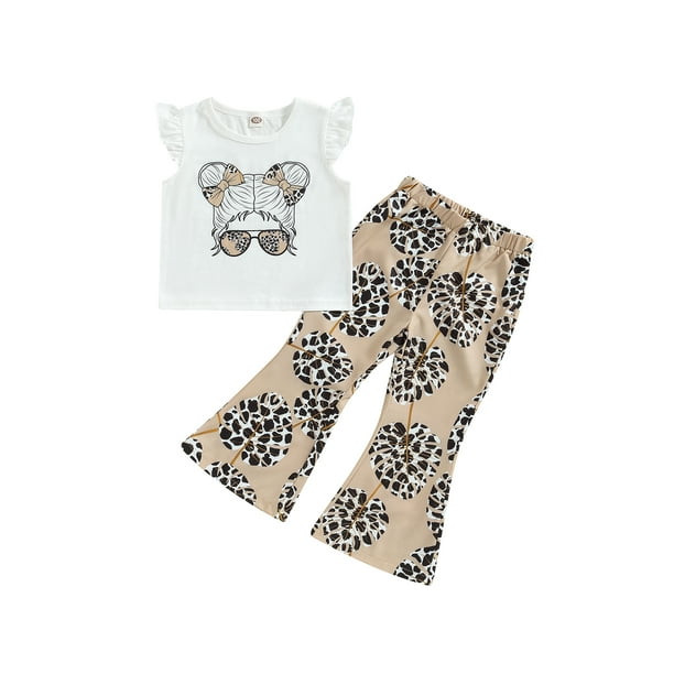 Gwiyeopda Kids Toddler Girls Casual Summer Outfits Ruffles Sleeve T Shirt Tops And Flared Pants Set Walmart Com